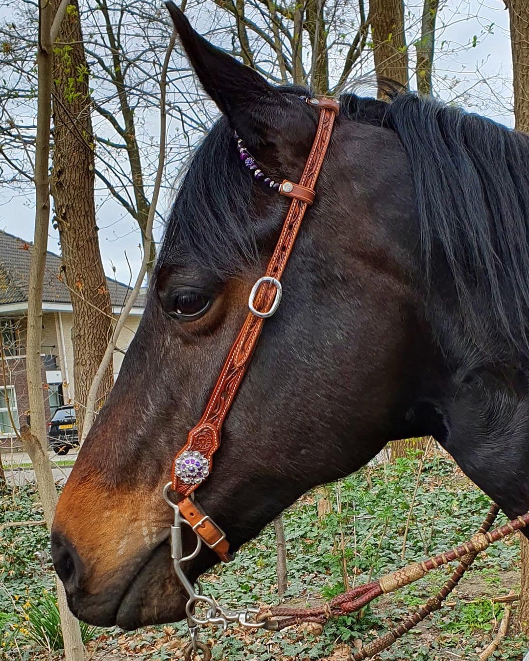 Amanda weet als geen ander waar ze mee bezig is, de producten die ze aanbiedt zijn prachtig en van ongelooflijke kwaliteit. Het leder is zacht en de stenen worden met zorg en in overleg uitgekozen als je specifieke stenen wilt. Het is niet zomaar een hoofdstel dat je koopt, maar een hoofdstel met ook nog eens een energetische functie vanwege de stenen. Ook de kleine steentjes komen, na een jaar gebruiken, niet los en blijven mooi zitten. Elk stuk is uniek wat het eens zo bijzonder maakt.